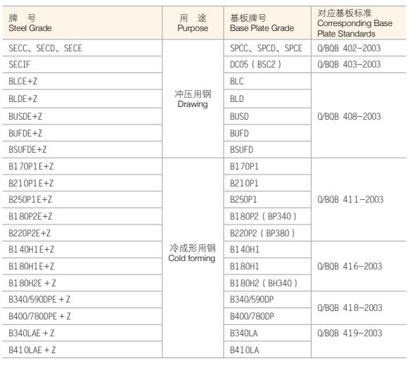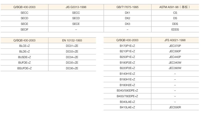 1、電鍍鋅牌號(hào)與基板牌號(hào)對(duì)照表