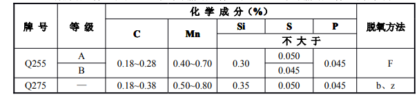 7.在供應(yīng)商品鋼錠(包括連鑄)、鋼坯時,供方應(yīng)保證化學成分(熔煉分析)符合表2-1規(guī)定,但為保證軋制鋼材各項性能符合本標準要求,各牌號A、B級鋼的化學成分可以根據(jù)需要進行適當調(diào)整,另訂協(xié)議。幕墻行業(yè)常選用:對焊接結(jié)構(gòu)Q235-BF,Q235-BF,Q235-BF,Q235-BF,對非焊接結(jié)構(gòu)Q235-A。
