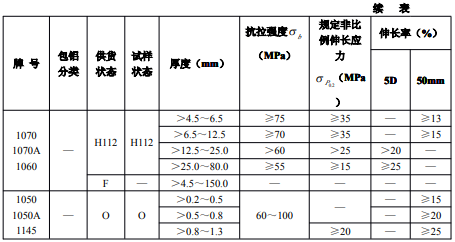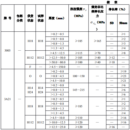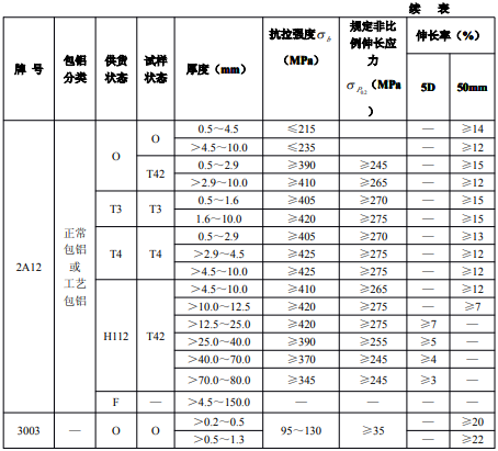 ②厚度小于等于0.7mm經鹽浴爐生產的退火板材,只能供應寬度小于或等于1200mm,長度小于或等于4000mm的板材。包覆層需包鋁的板材應進行雙面包覆,其包覆材料牌號及軋制后的包覆層厚度應符合表3的規定。
