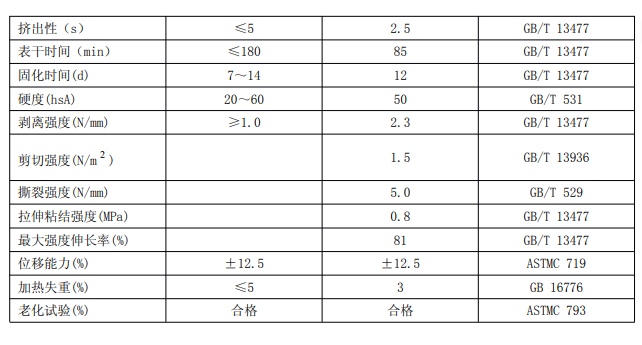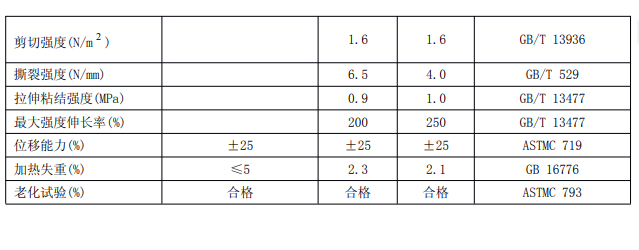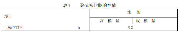 按我國標準,聚硫密封膠性能應符合表 1 的要求