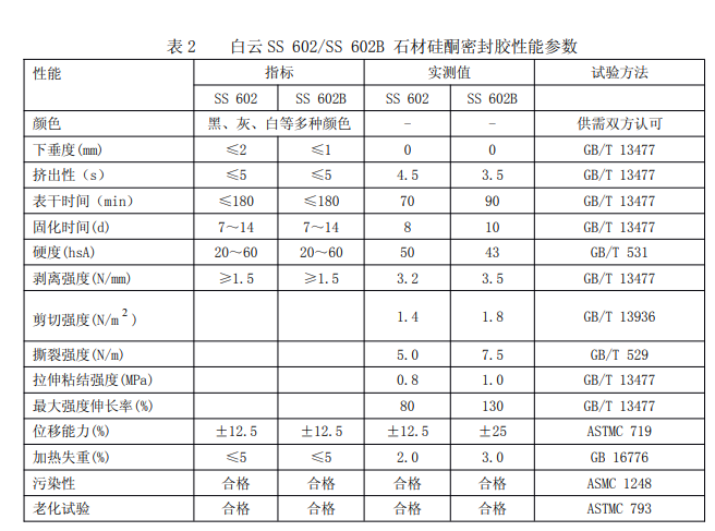 其中 SS 602B 的位移能力大于或等于± 25%,達到幕墻用耐侯密封膠要求,并不會對石材造成污染。