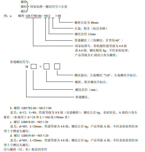 常用螺栓(釘、柱)標記