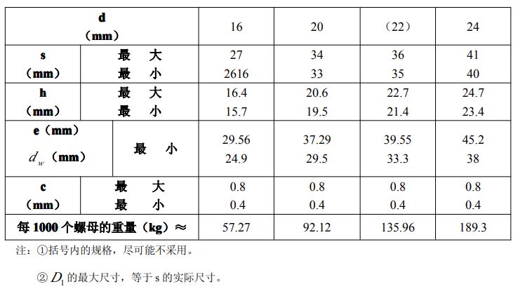 鋼結構用扭剪高強度螺母的規(guī)格、尺寸及重量